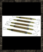 Set includes five 6-inch double ended wire tools for light removal and shaping of clay. made from high-strength wire, hardwood handles with brass ferrules.